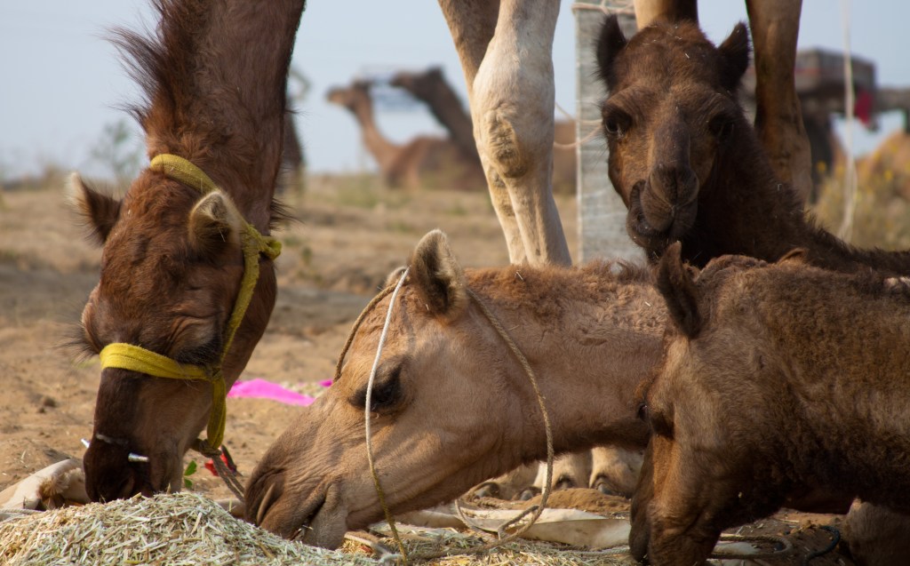 Camels eating
